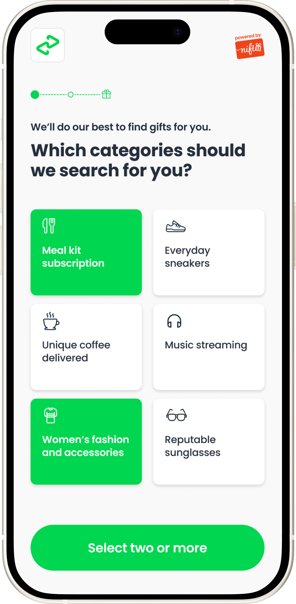 Of course! Nift matches you with available gift options tailored to your interests. However, if you don’t like the options you see, you may reset your card once and try again. To reset your card, please reach out to our customer success team at help@gonift.com.